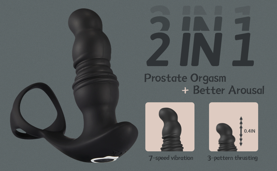 2 in 1 3 Thrusting 7 Vibrations Anal Massager with Cock Ring