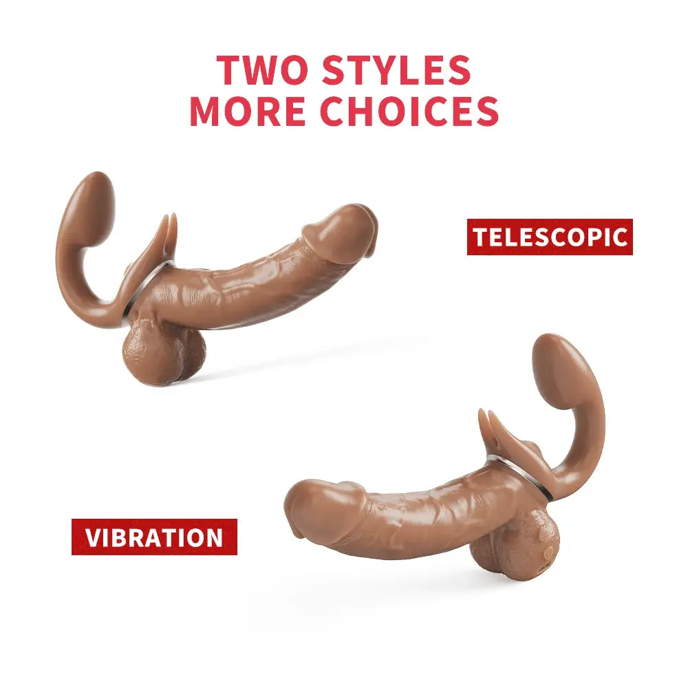G-Spot Wearing High Frequency Telescopic Liquid Silicone Ergonomic Designed Double Enjoyment Waterproof Dildo Vibrator